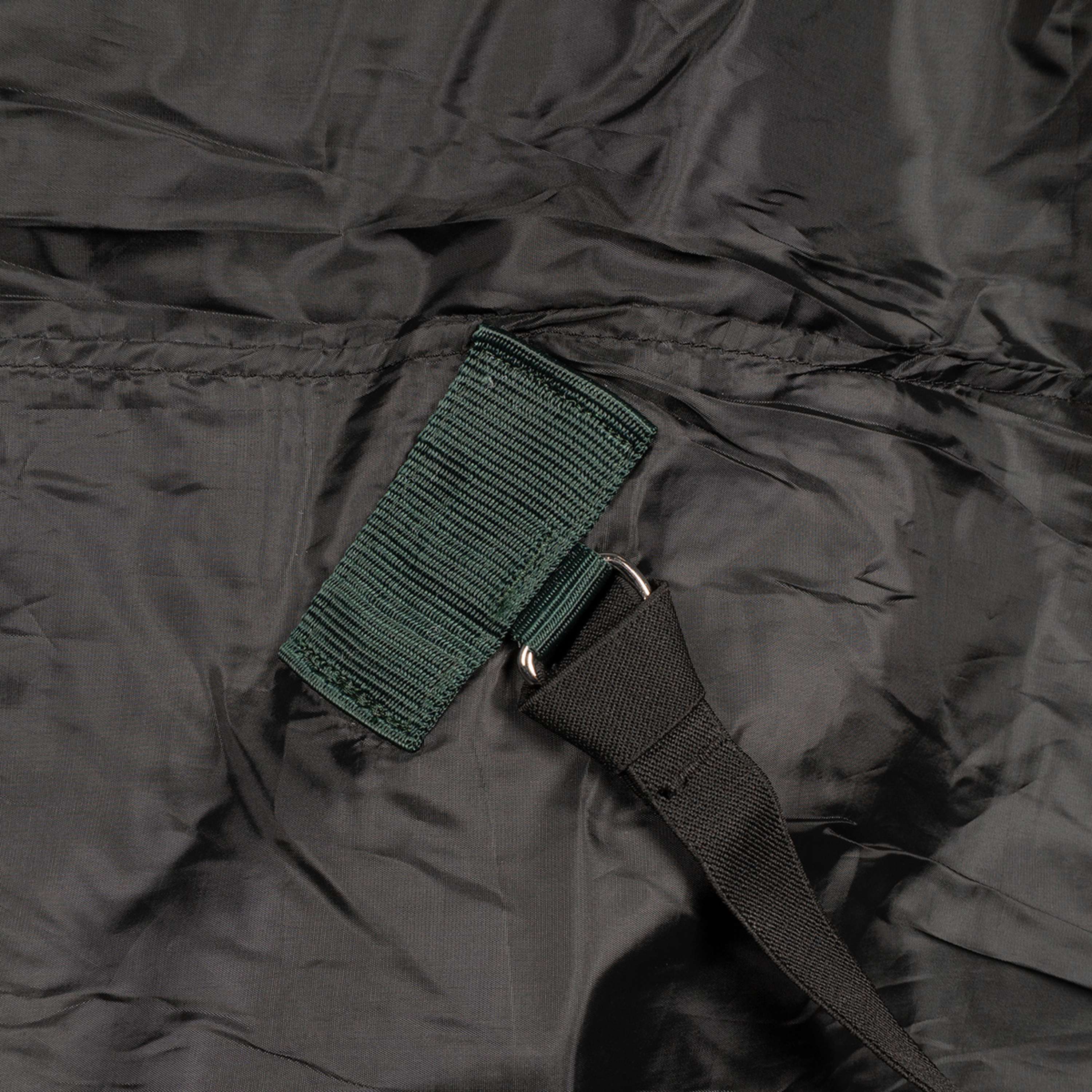 De snelsluiting op de borst maakt het op- en afdoen eenvoudig, terwijl versterkt klittenband extra stevigheid geeft. Dankzij de lage kruissingels en bilkoorden blijft de deken perfect op zijn plaats.