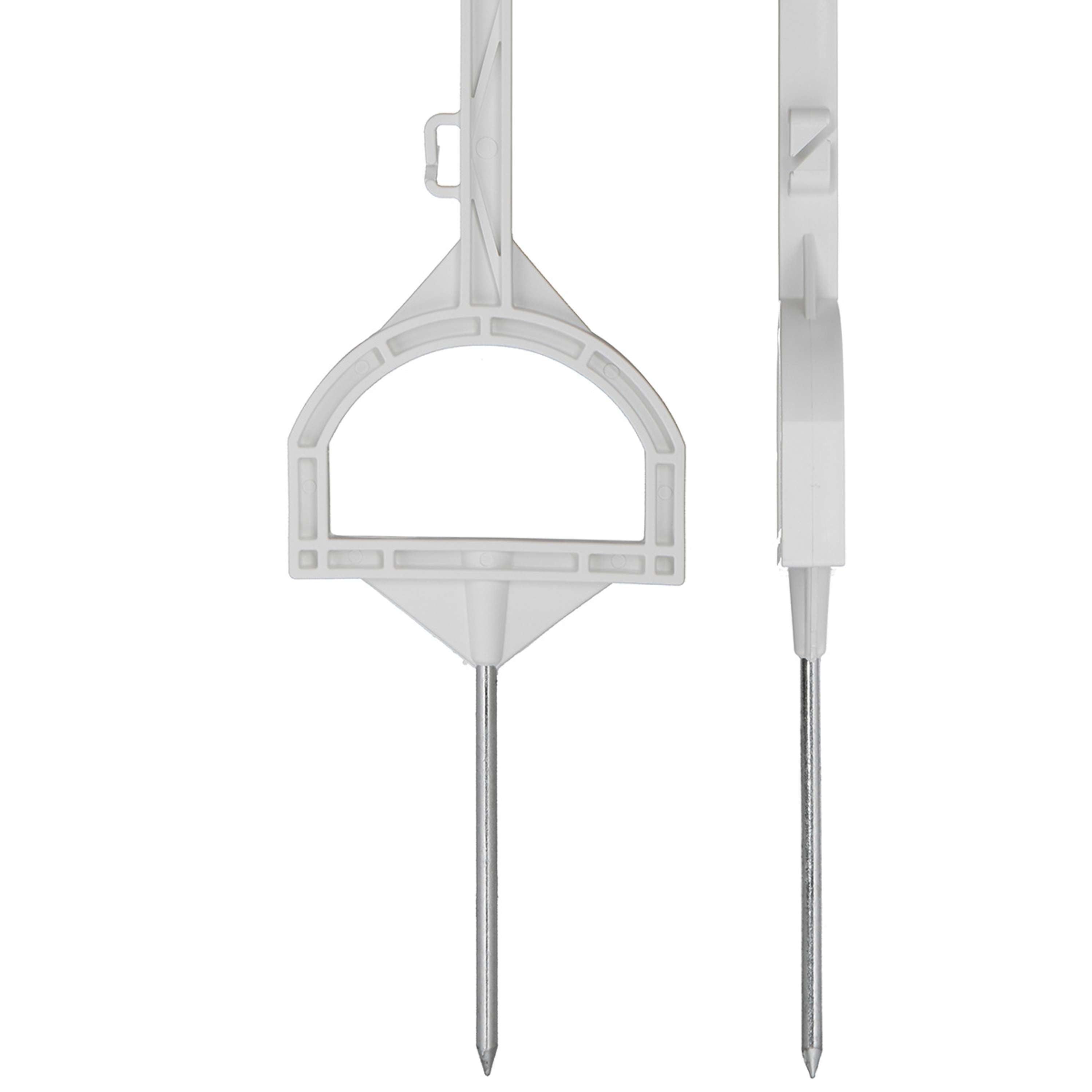 Dankzij de handige instapbeugel (voetsteun) plaats je de paal eenvoudig en stevig in de grond. Het robuuste, torsiestijve profiel voorkomt verdraaiing en zorgt voor een stabiele positionering, zelfs bij intensief gebruik en wisselende weersomstandigheden. De paal is voorzien van een ingegoten, verzinkte stalen pen van 8mm voor optimale verankering in de bodem.