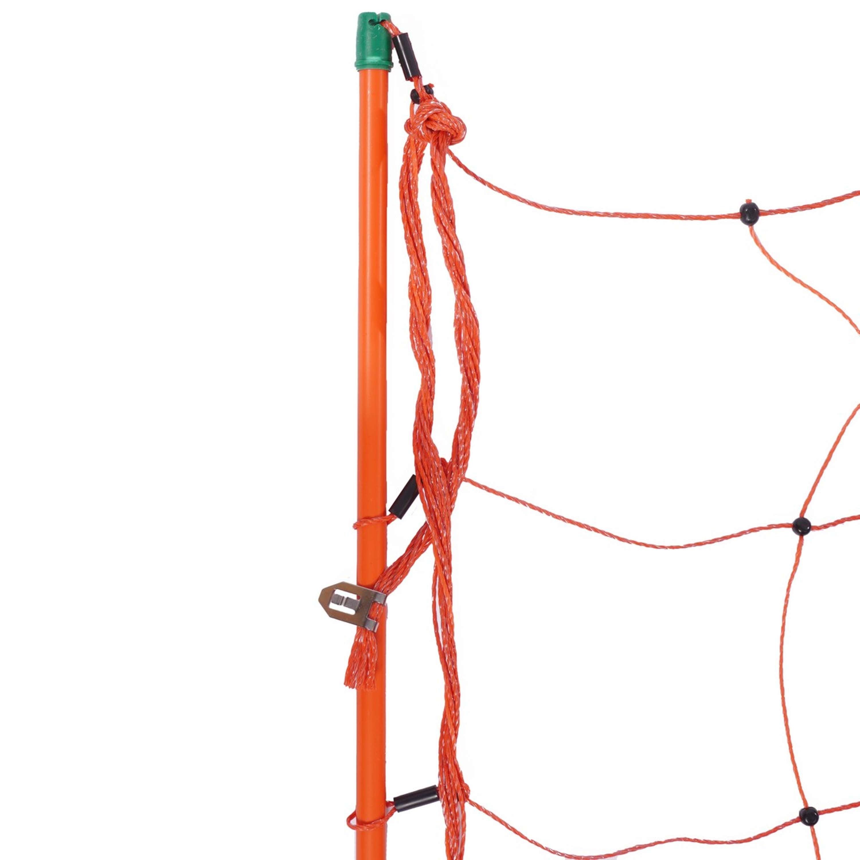 De bovenste draad van het net draagt stroom en is extra versterkt, wat zorgt voor een constante geleiding over het hele net. Dit maakt het net extra betrouwbaar en effectief in het gebruik.