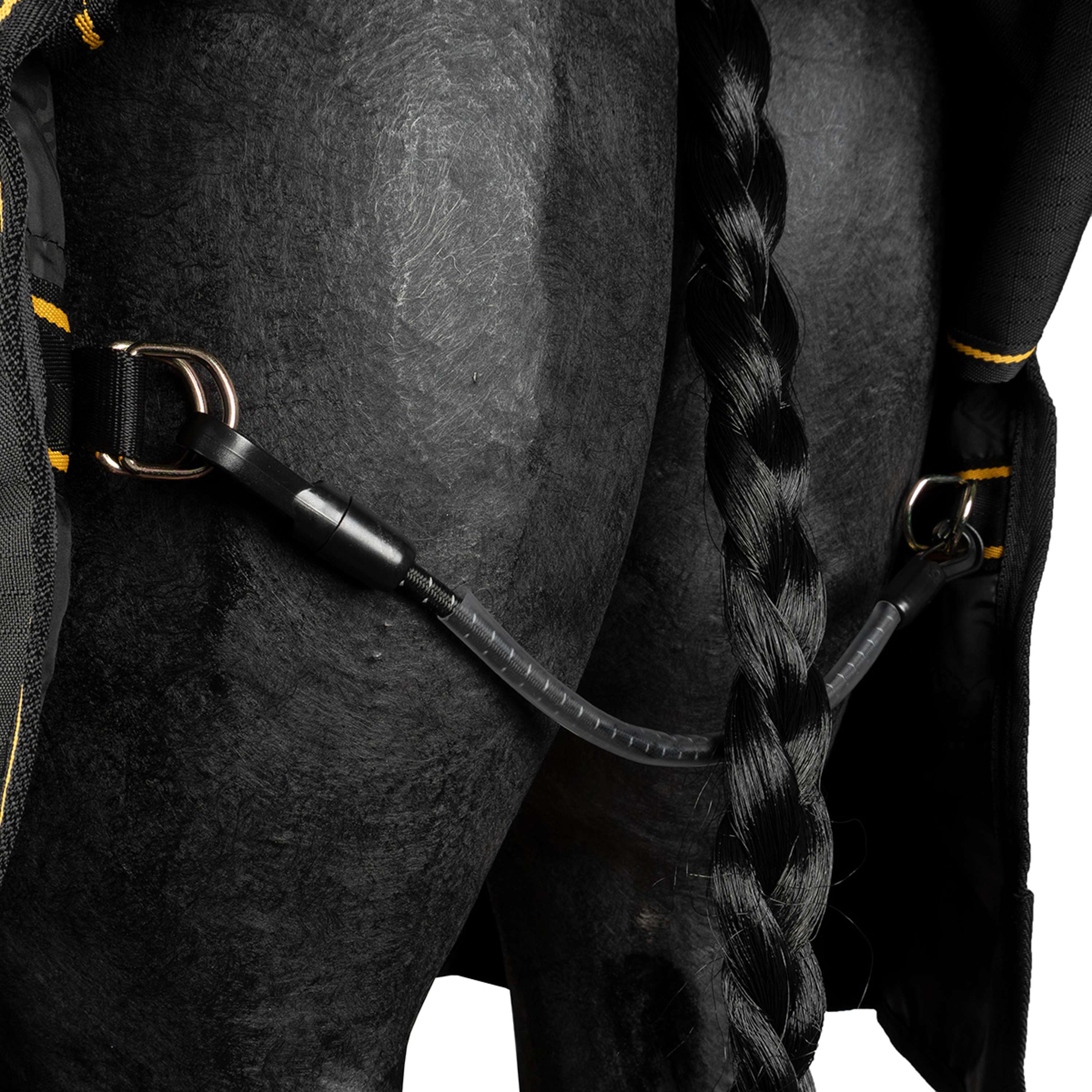 Het design is niet alleen sterk, maar ook heel praktisch. De deken heeft een staartflap, een enkel staartkoord met de mogelijkheid om bilriemen te bevestigen (deze worden niet meegeleverd), en beenuitsparingen.