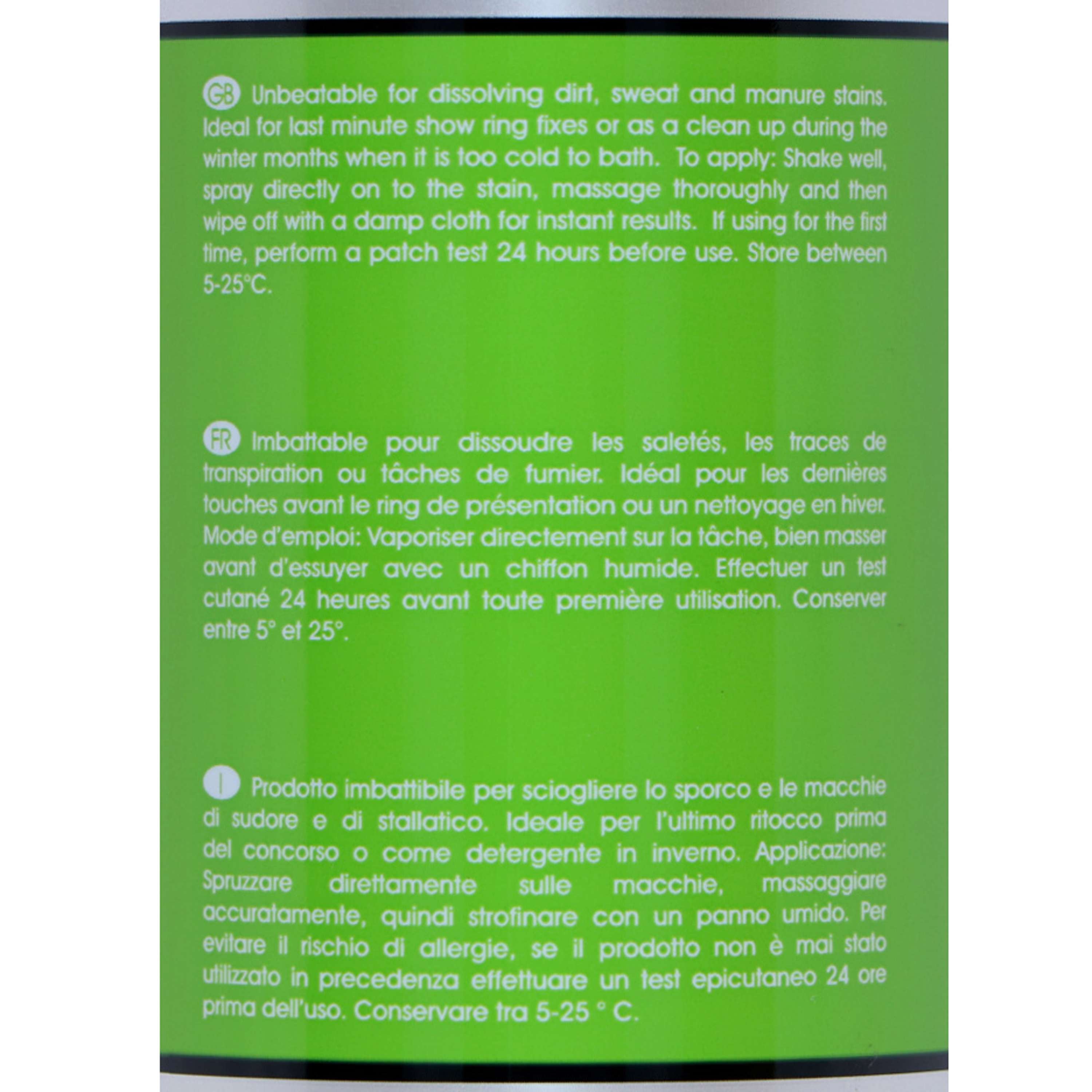 Je hoeft geen emmers of borstels meer mee te slepen. Gewoon de vlekkenspray op de vlekken spuiten, even wachten en je paard is weer als nieuw. Ideaal voor de momenten dat je snel resultaat wilt zonder al te veel gedoe.