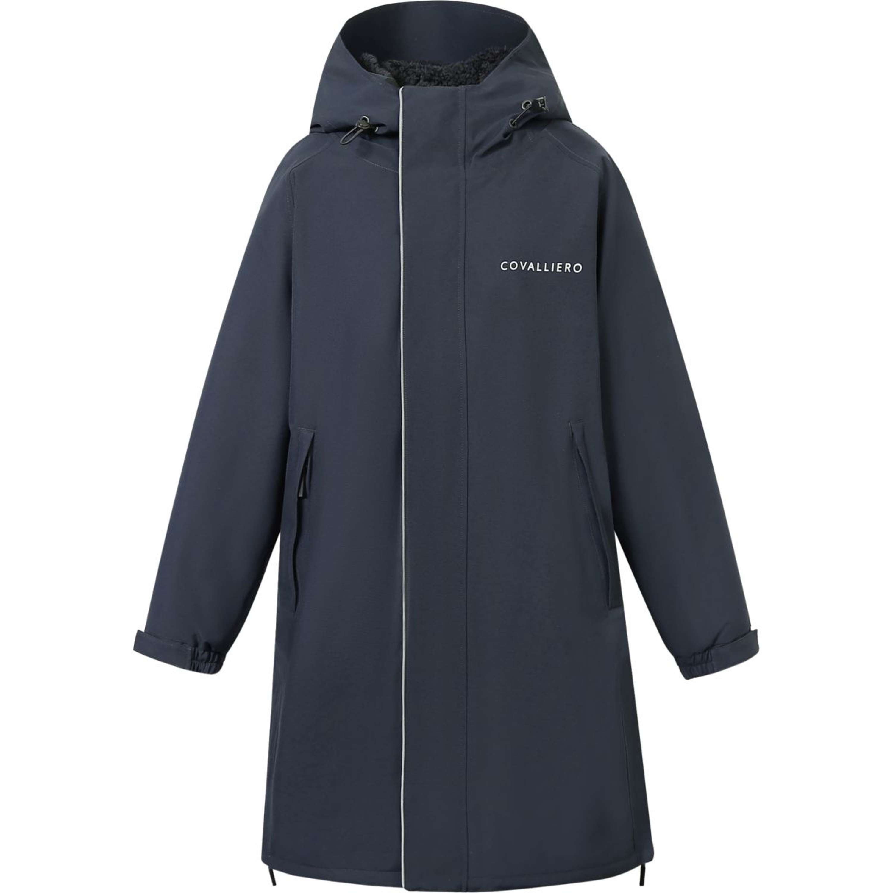 De Arctic jas in oversized look is dankzij de behaaglijke voering de ideale metgezel voor koude dagen. Uitgerust met een tweewegritssluiting, een uitschuifbare capuchon en beenlussen, is de jas perfect voor paardrijden of voor op stal bij koude temperaturen. De behaaglijke, warme binnenvoering biedt perfecte bescherming tegen de kou. Oversized look. Trekkoord om de pasvorm van de capuchon aan te passen. De capuchon kan worden uitgeklapt en met knopen worden vastgezet. Elastische binnenbanden met klittenbandsluiting om de jas aan het been te bevestigen. Met tweewegritssluiting, magnetische stormflap. Met reflecterende applicaties. Twee handwarmerzakken met ritsen. Verstelbare manchetten. Ademend tot 3.000 g/m²/24 uur. Waterdicht tot 10.000 mm waterkolom. Machinewasbaar op 30 °C.