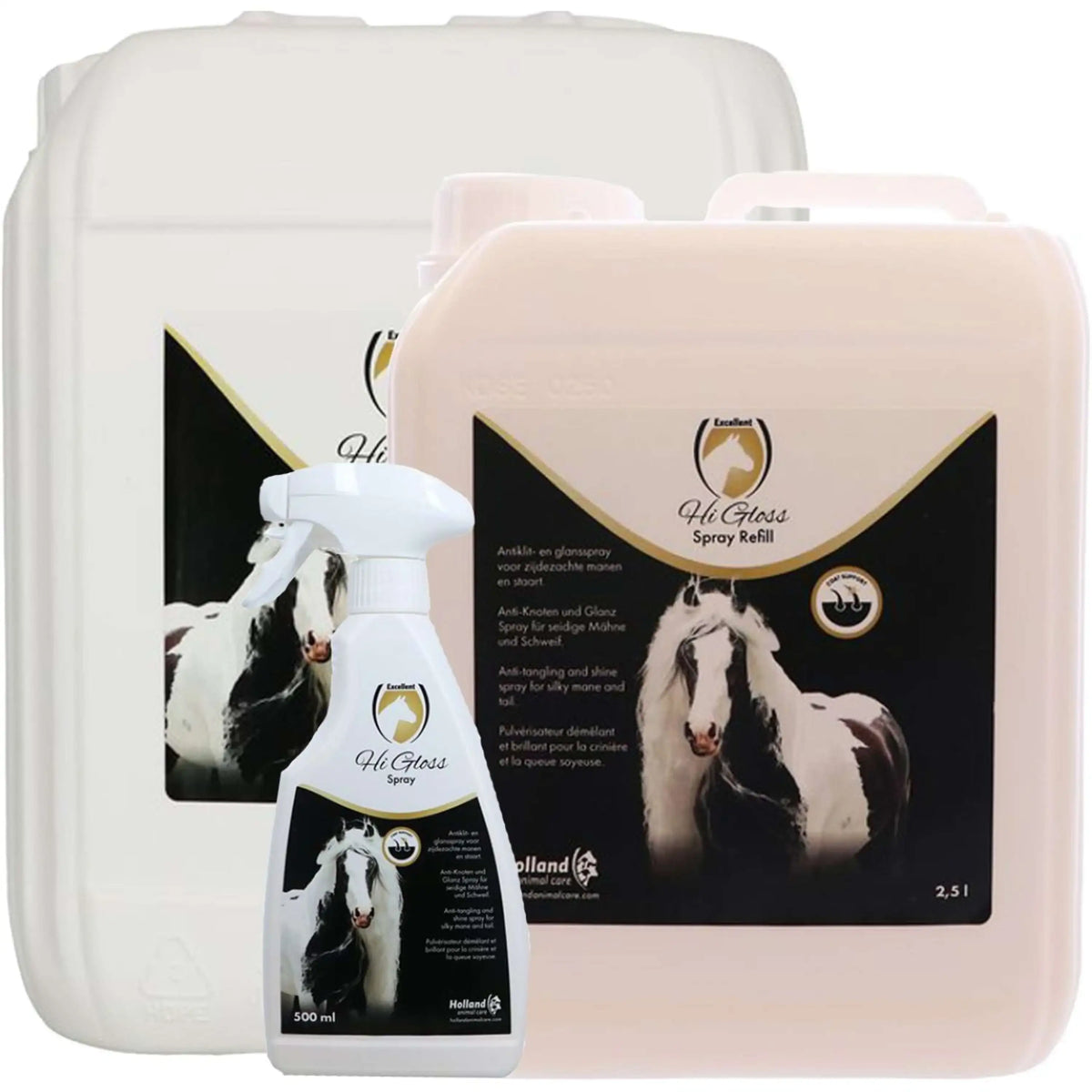 Klaar voor een prachtige paardenvacht zonder klitten en stof? Probeer de Excellent Hi Gloss Spray! Deze spray geeft je paard een onweerstaanbare glans en laat het heerlijk ruiken. Je hebt snel een klitvrije staart en manen met een zijdezachte glans die opvalt.