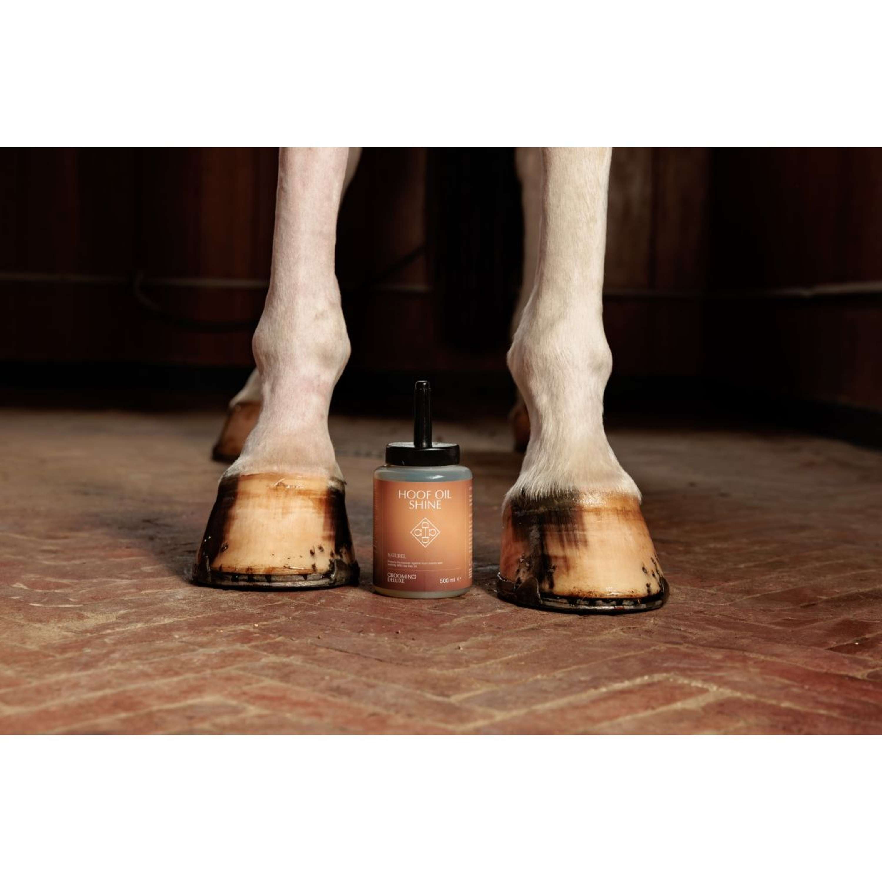 De Grooming Deluxe Hoof Oil Shine is een premium mix gemaakt met natuurlijke ingrediënten en verrijkt met tea tree olie om uitgebreide hoefverzorging te bieden. Deze unieke formule voorkomt uitdroging, versterkt de hoefstructuur en beschermt tegen barsten en versplinteren van de hoorn. Onze hoefolie is ontwikkeld in samenwerking met experts op het gebied van paardenverzorging en dringt snel door, waardoor de hoeven elastischer, gevoeder en mooi glanzend worden. De vakkundig uitgebalanceerde mix is ontworpen om de hoeven van je paard in topconditie te houden en biedt een natuurlijke verdediging bij elke toepassing. Verkrijgbaar in zwart of naturel.