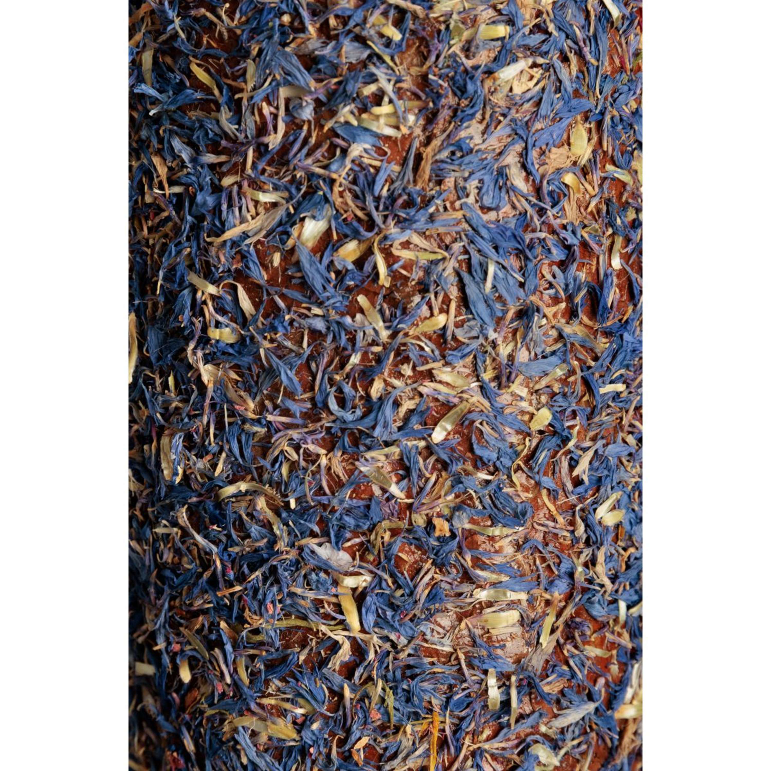 – Het blauwe stuk is doordrenkt met korenbloem, bekend om zijn ontstekingsremmende, spijsverterings- en ontgiftende eigenschappen.
