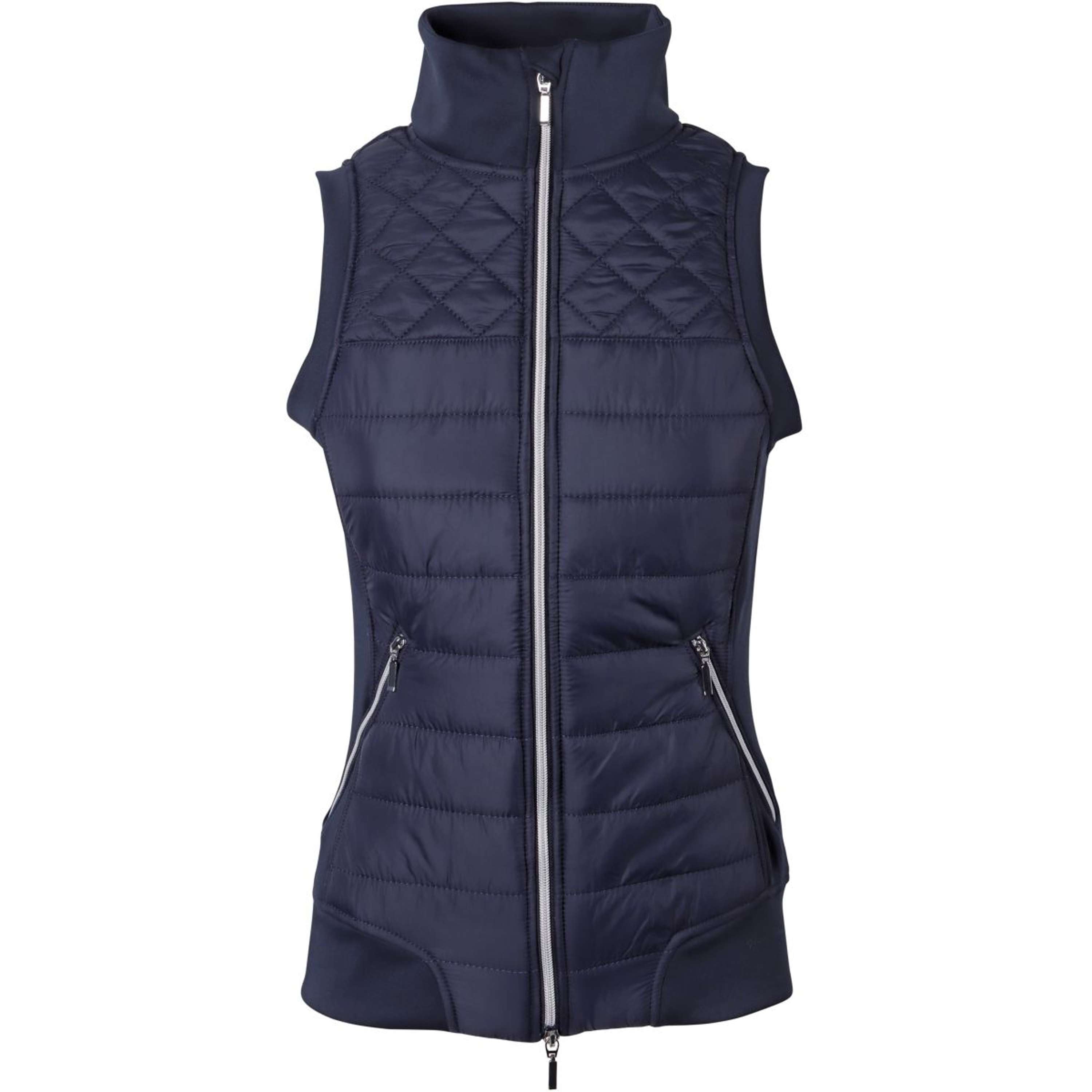 Sportieve bodywarmer met gevoerde body en comfortabele stretch zijpanelen, een tweeweg ritssluiting en twee steekzakken met ritssluiting.100% polyester.