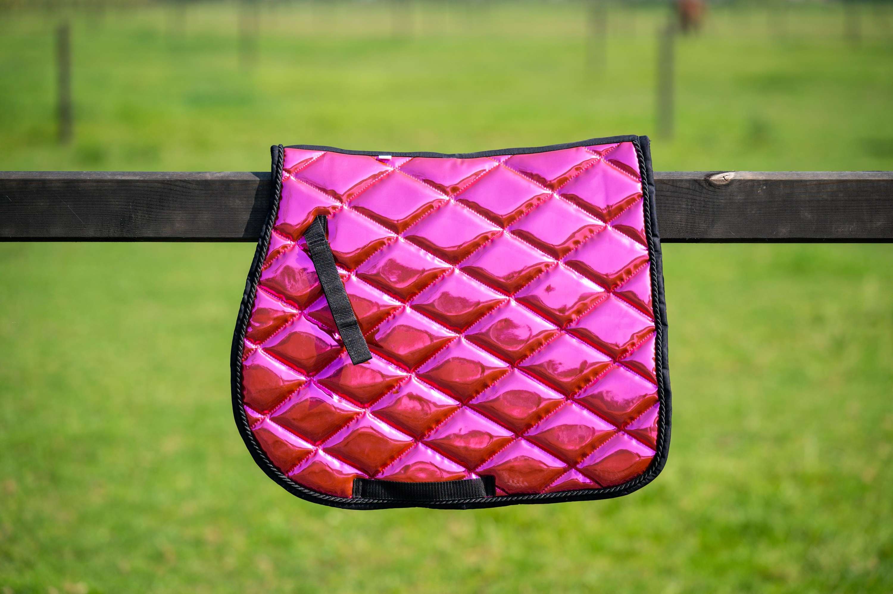 Dit zadeldekje is niet alleen mooi, maar ook lekker zacht. De zachte vulling zorgt voor fijne demping, zodat het zadel comfortabel aanvoelt voor je paard. Perfect voor lange ritten en intensieve trainingen.