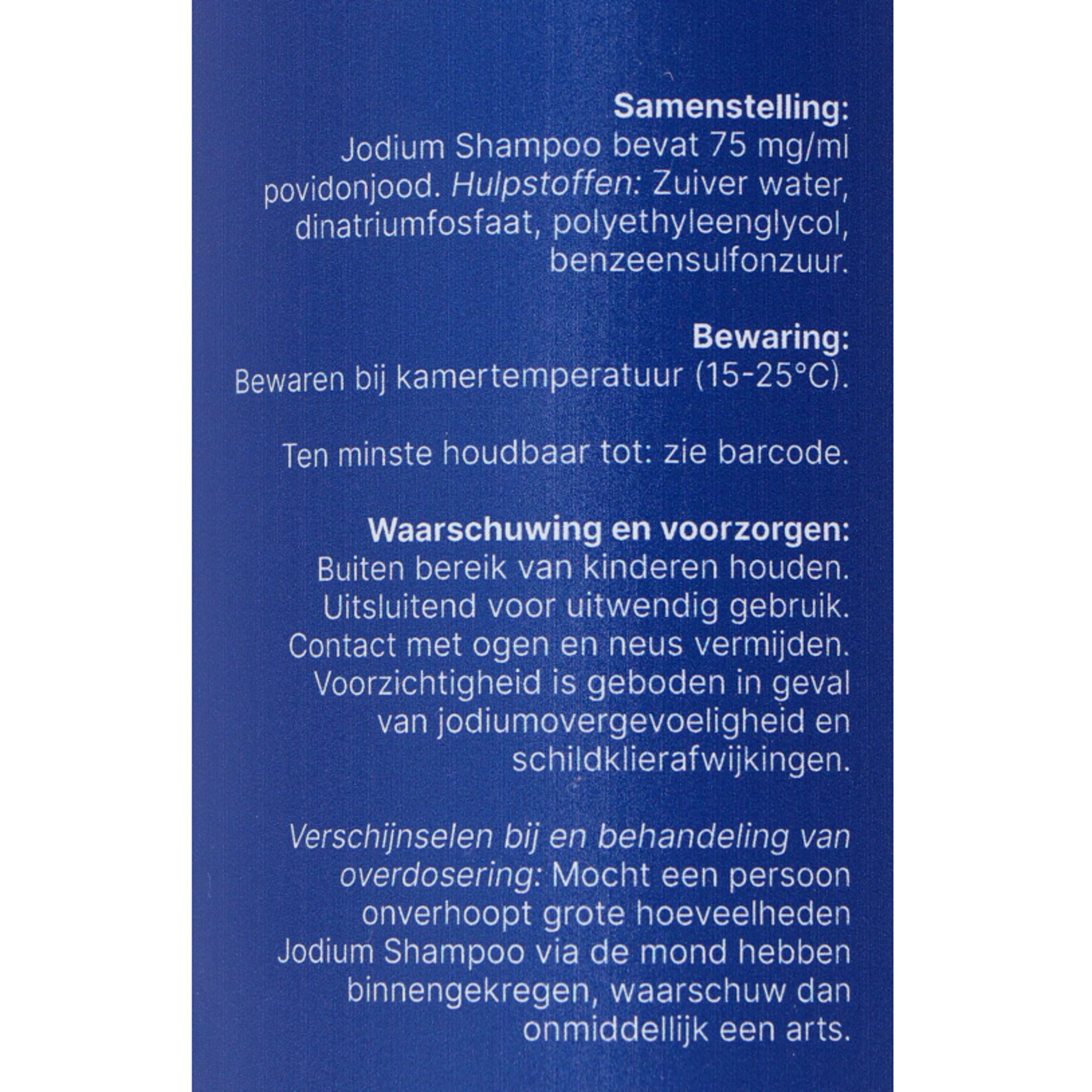 Jodium Shampoo heeft als bestanddeel povidonjodium. Povidonjodium is makkelijk oplosbaar in water en is prettig in gebruik omdat het niet prikt.