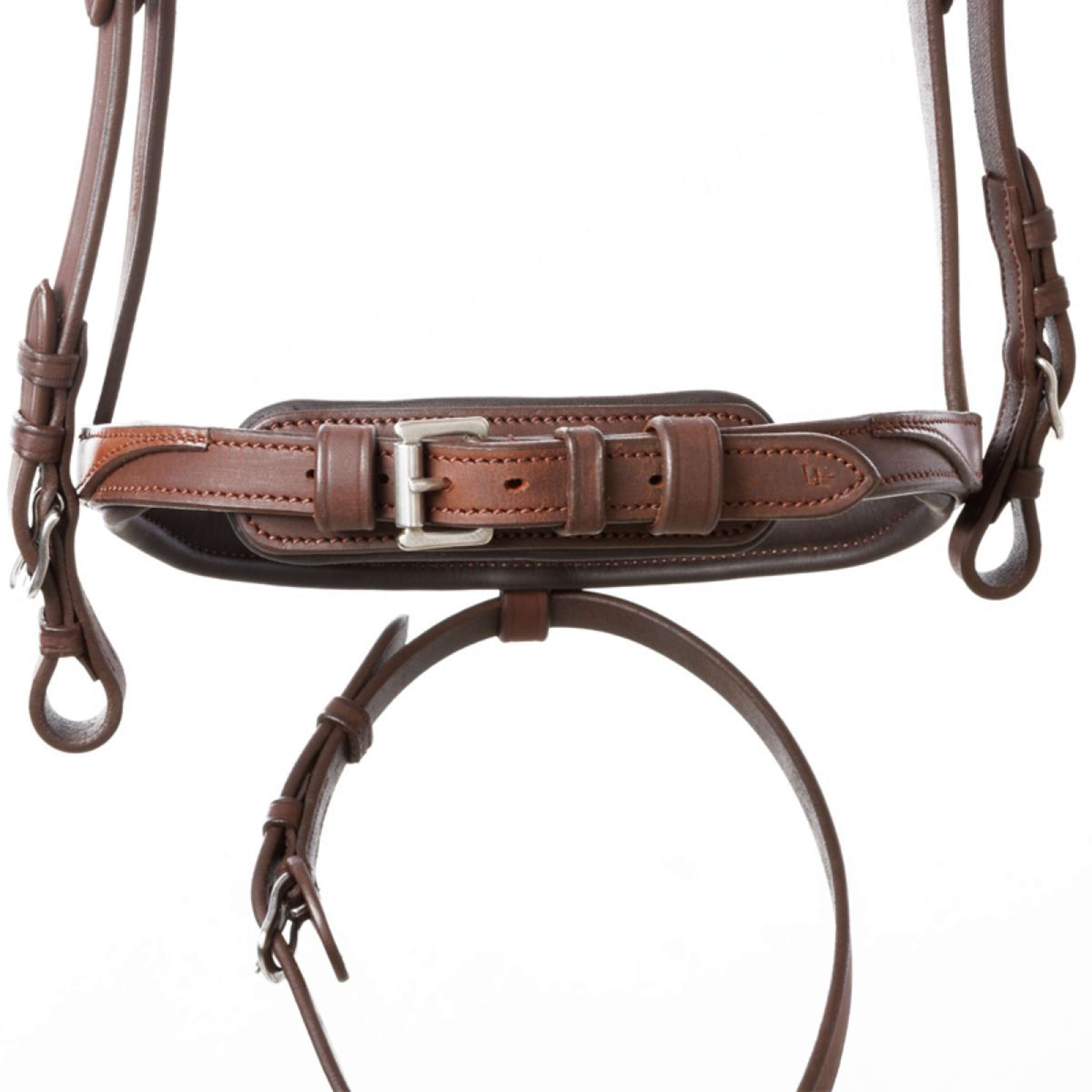 Gemaakt van sterk leer, dit hoofdstel is van lange duur. Het is eenvoudig te gebruiken en gemakkelijk aan te passen door de verstelbare gespen. Geen geknoei meer wanneer je op het paard wilt springen!