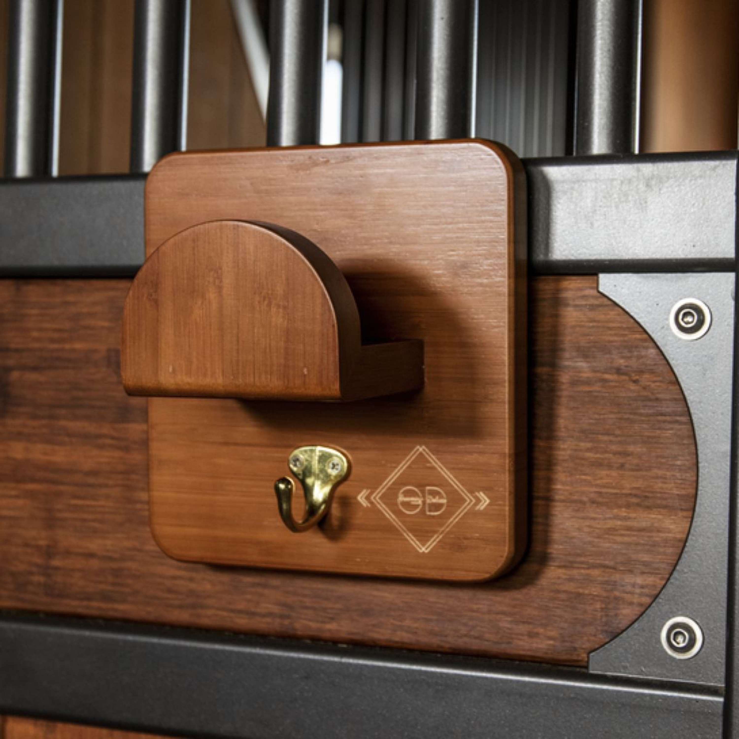 Hang je hoofdstel of halster eenvoudig op en houd alles netjes bij elkaar. Deze hanger heeft zelfs een gouden haak voor dat beetje extra flair. Ideaal voor de zadelkamer of stal!