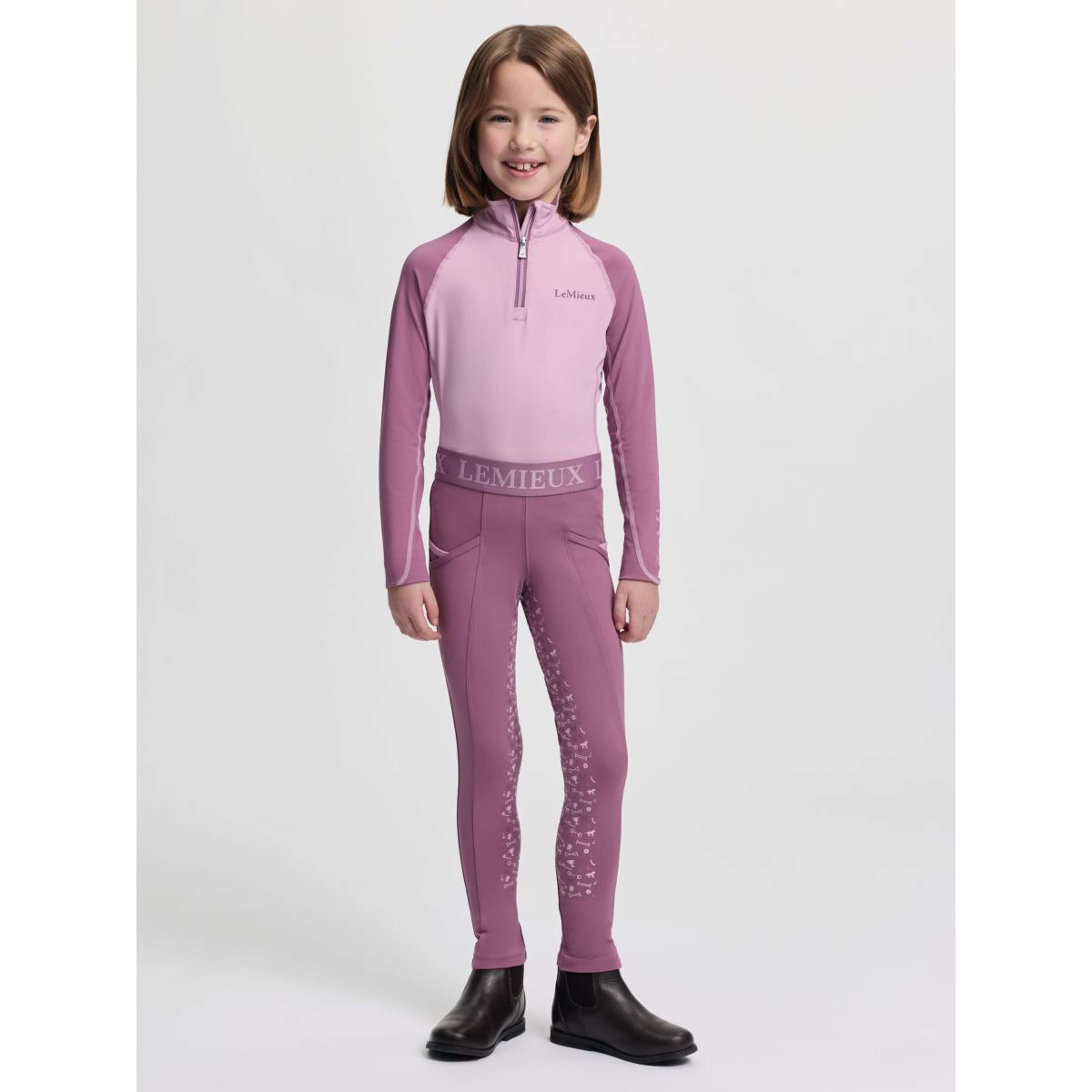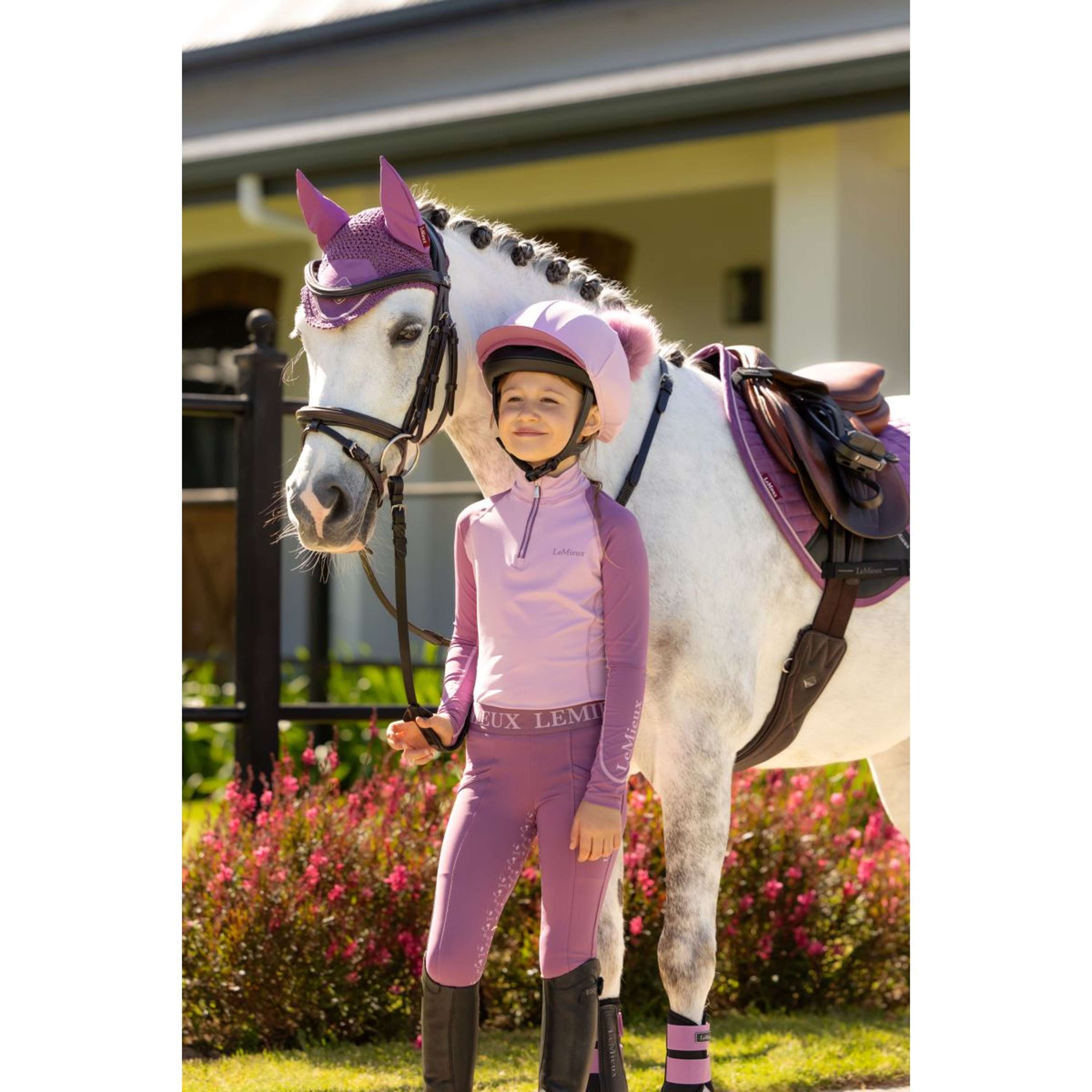 Met subtiele ontwerpveranderingen tussen de verschillende kleuren in het assortiment, is het een ideale manier om mini-power toe te voegen aan de ruitergarderobe van je kleine ruiter!