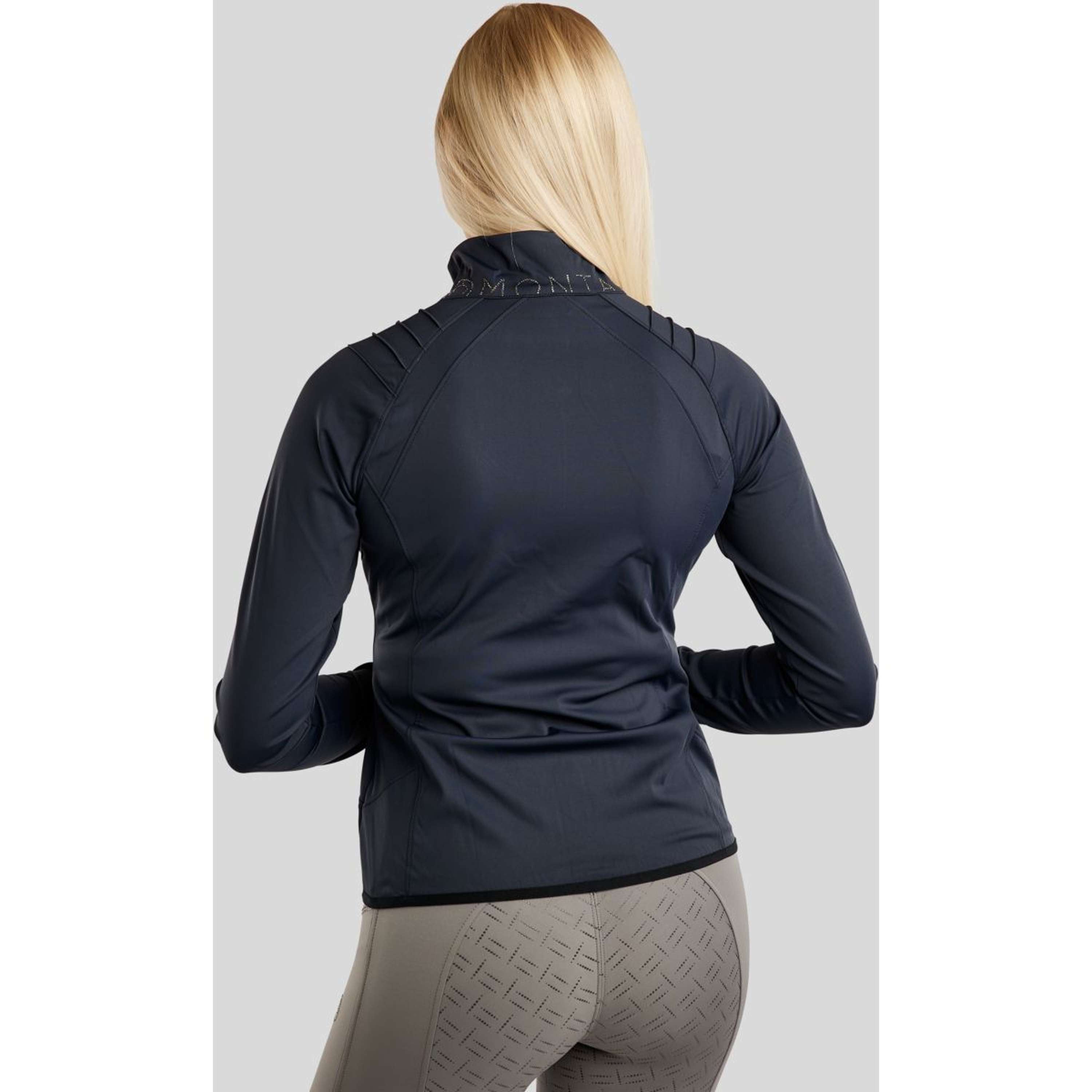 De decoratieve pintucks op de schouders geven een luxueuze en verfijnde touch, terwijl het Montar-logo op de achterkant van de kraag — gemaakt van kleine kruin van geweermetaal — zorgt voor een elegante en fonkelende afwerking.