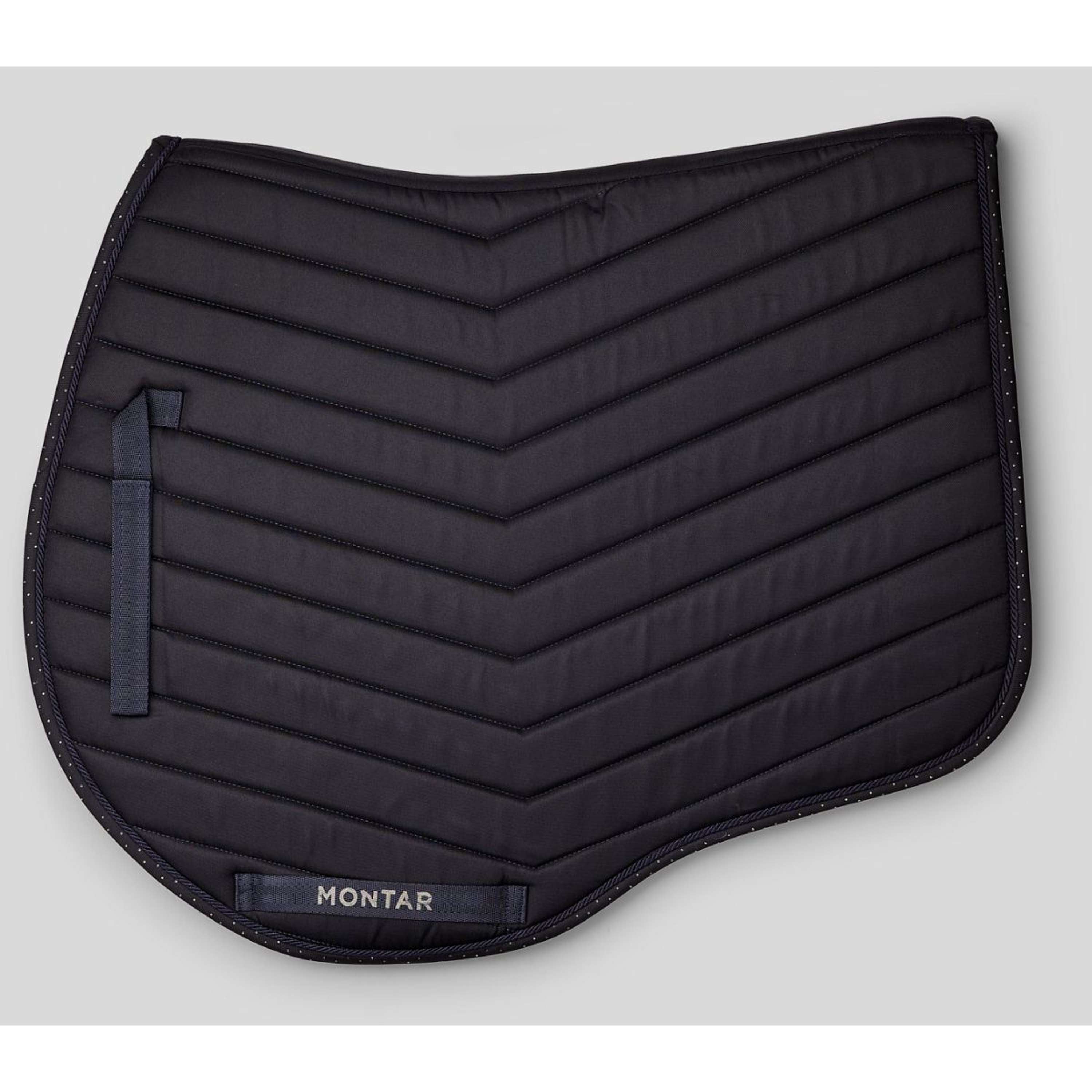 Achterin zorgt ademend gaas voor een efficiënte luchtstroom om het paard koel en comfortabel te houden – zelfs tijdens intensieve rijsessies. Een discreet Montar-logo is elegant geborduurd in een bijpassende tint, wat het pad een subtiele maar onderscheidende Montar-touch geeft.
