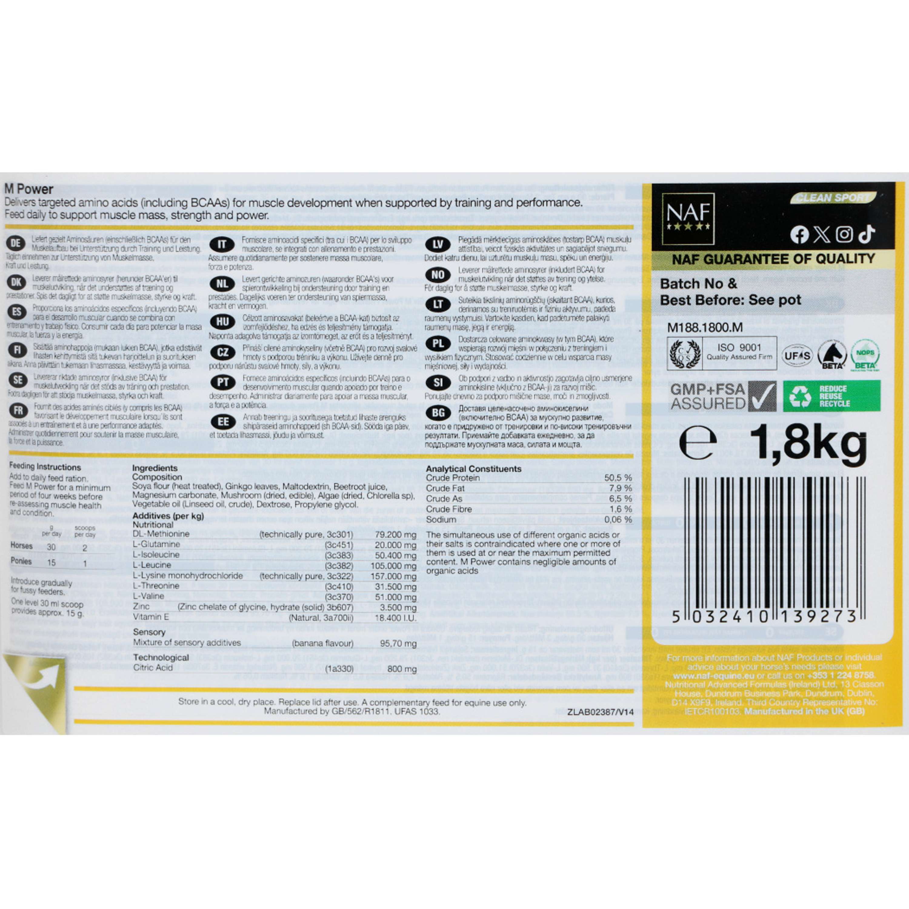 Dit supplement zit boordevol aminozuren, de bouwstenen van eiwitten, die belangrijk zijn voor de groei van gezonde spieren. Daarnaast bevat M Power antioxidanten en kruiden die samen zorgen voor soepele en fitte spieren. Zo blijft je paard in topvorm, klaar voor elke uitdaging.