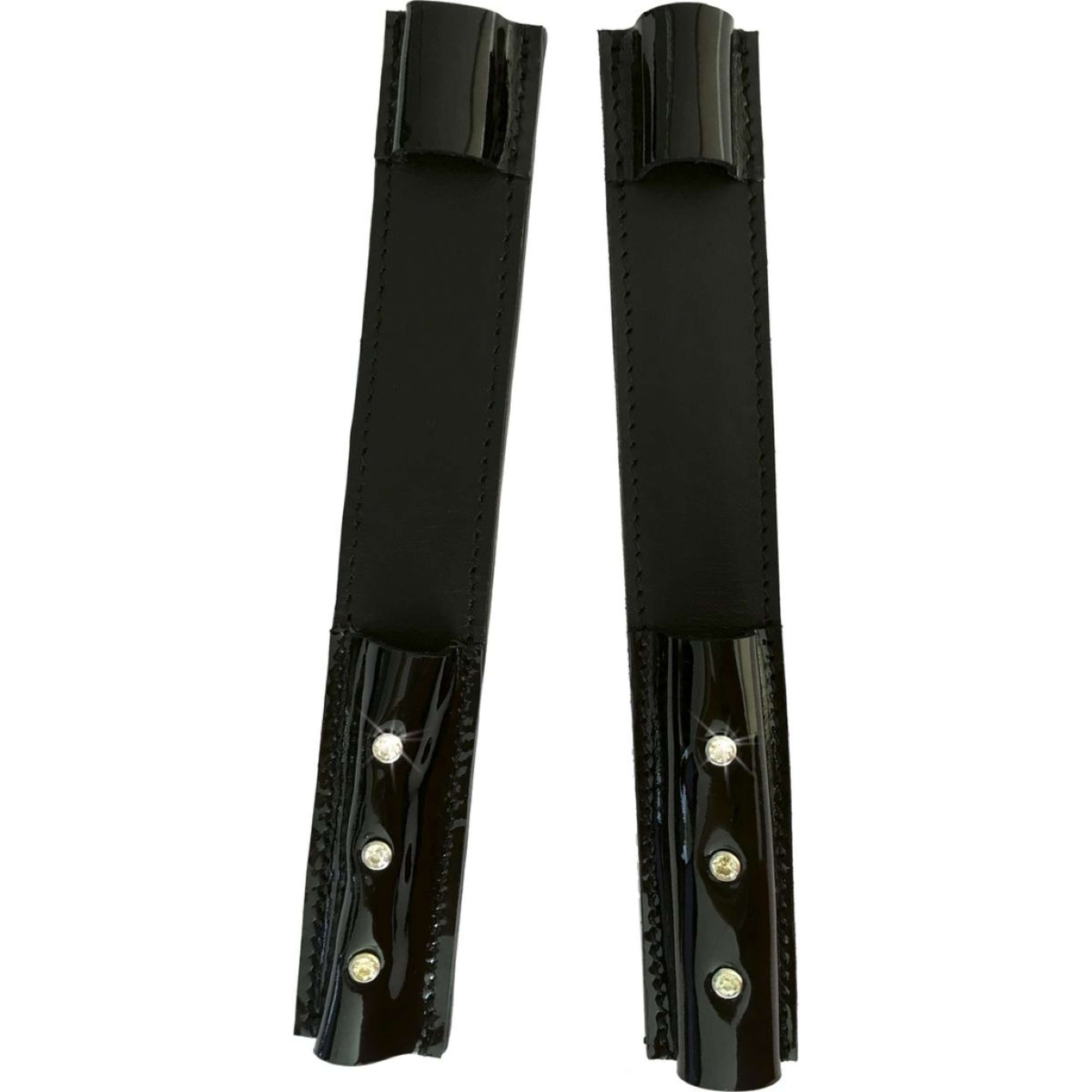 Deze spoorbeschermers combineren stijl en nut. Gemaakt van duurzaam lakleer, ze zijn ontworpen om je sporen te beschermen zonder in te boeten op uitstraling. De strass steentjes geven je uitrusting net dat beetje extra flair.