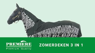 De Premiere zomerdeken 3 in 1 met vaste hals en buikflap is perfect om je paard zowel tegen regen, zon als insecten te beschermen. Deze veelzijdige deken is anatomisch gevormd voor een optimale pasvorm en gemaakt van stevig, ademend 600D polyester met een waterdichte coating aan de bovenzijde. De naden zijn getapet en de binnenkant heeft een gladde voering van 190T nylon.
