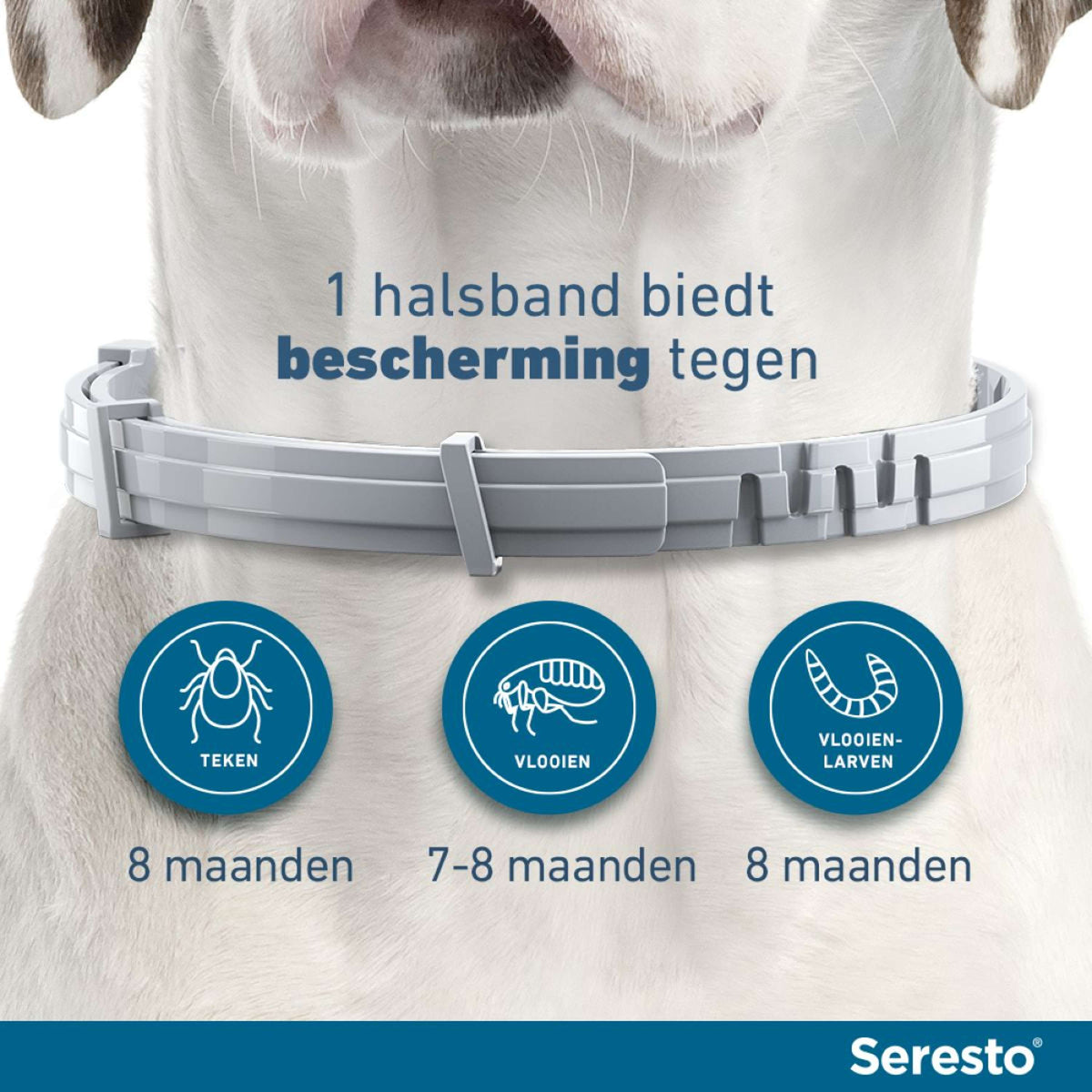 - Beschermt tegen teken en vlooien tot 8 maanden