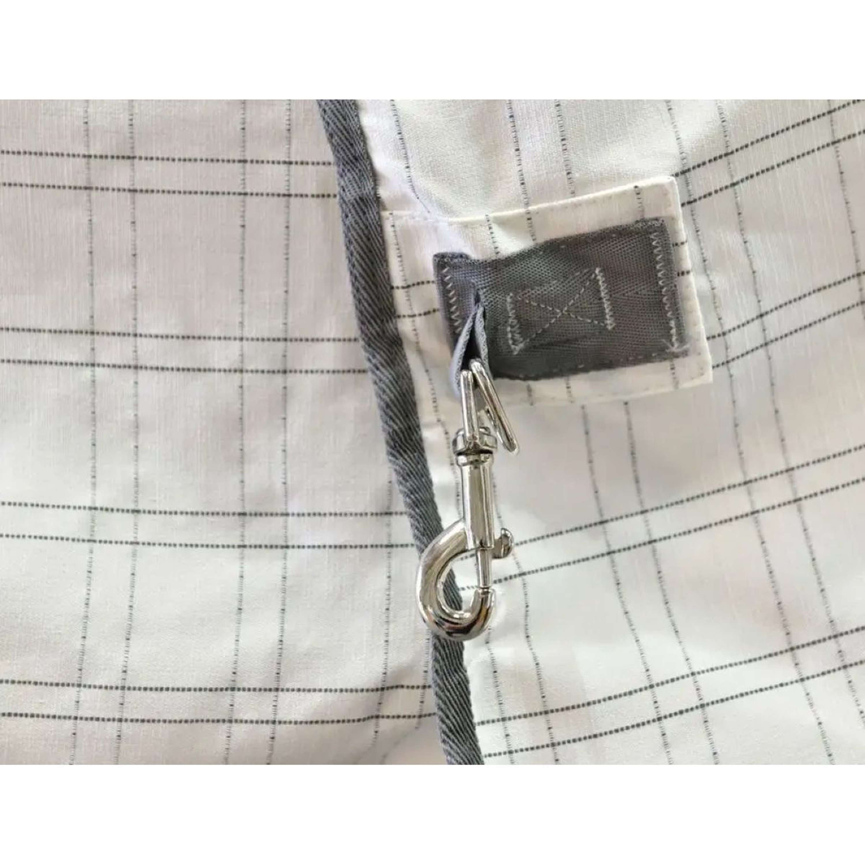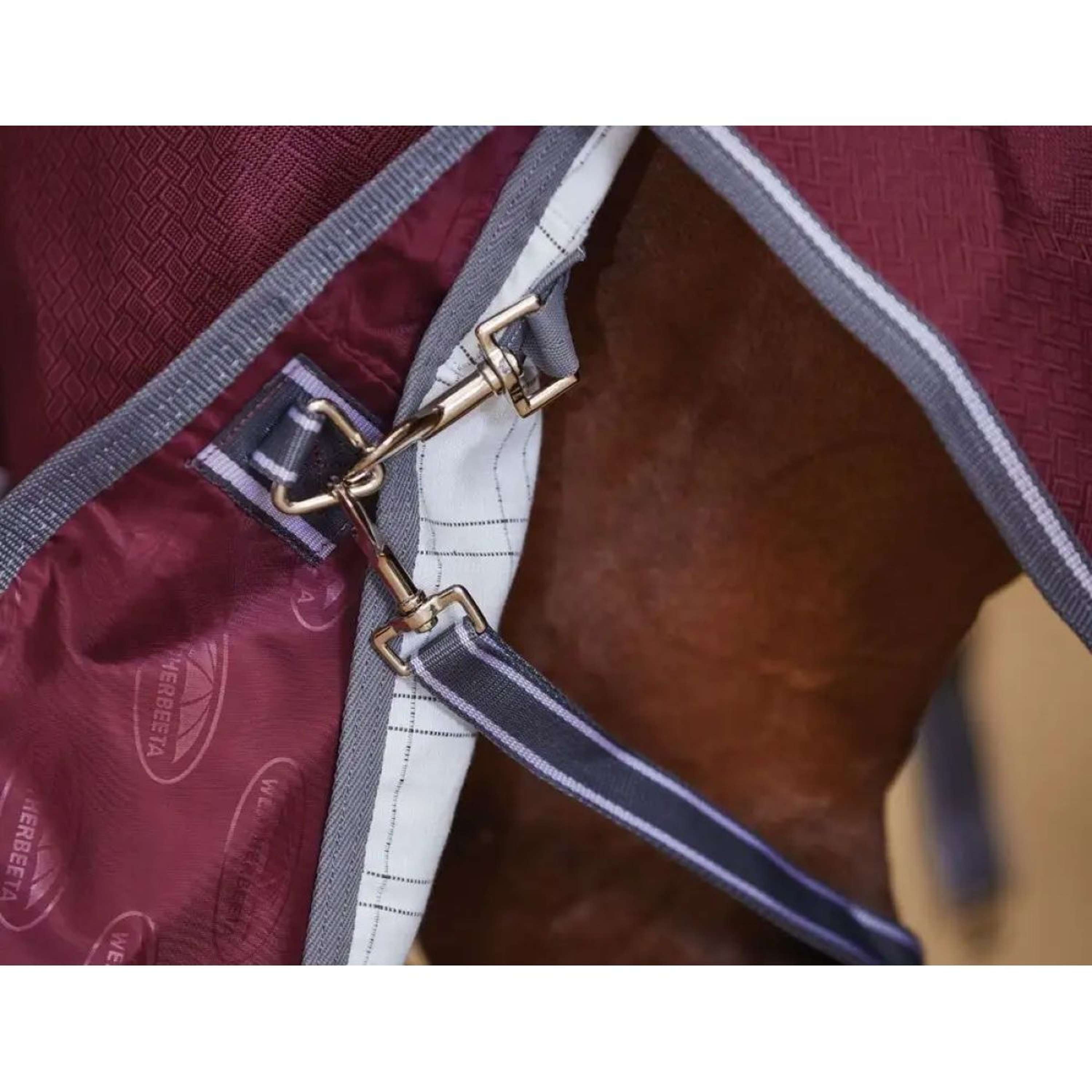 Deze liner past prima onder compatibele WeatherBeeta-dekens. Hij heeft een enkele borstband met klittenband, vier lusjes met klittenband bij de nek en clips aan de achterkant. Zo kun je de deken makkelijk vastmaken en weer loshalen als dat nodig is. Eenvoudig en praktisch!