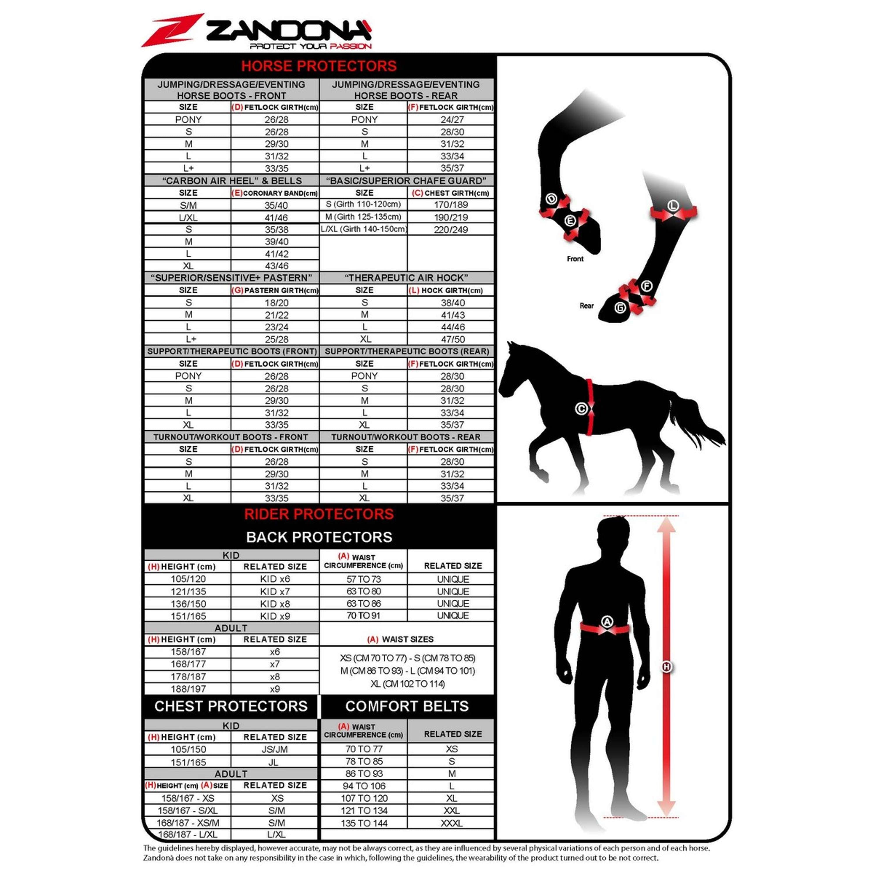 De Zandona Pijpkousen zijn verkrijgbaar in de maten M, L en XL. Zo is er altijd een perfecte pasvorm te vinden voor jouw paard.